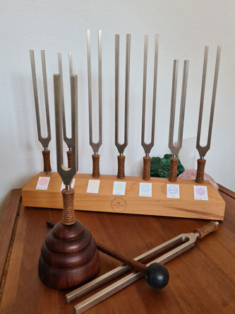 Sie ist nicht nur eine wirksame Behandlungsform, sondern unterstützt auch bei anderen Heilmethoden wie Physiotherapie, Massagetherapie, Chiropraktik und Psychotherapie. Stimmgabeln können in einer Vielzahl von Situationen Einsatz finden, sei dies zur persönlichen Entspannung Zuhause, während einer Kaffeepause im Büro oder einer professionellen Therapiesitzung (sog. Tonpunktur oder Phonophorese).