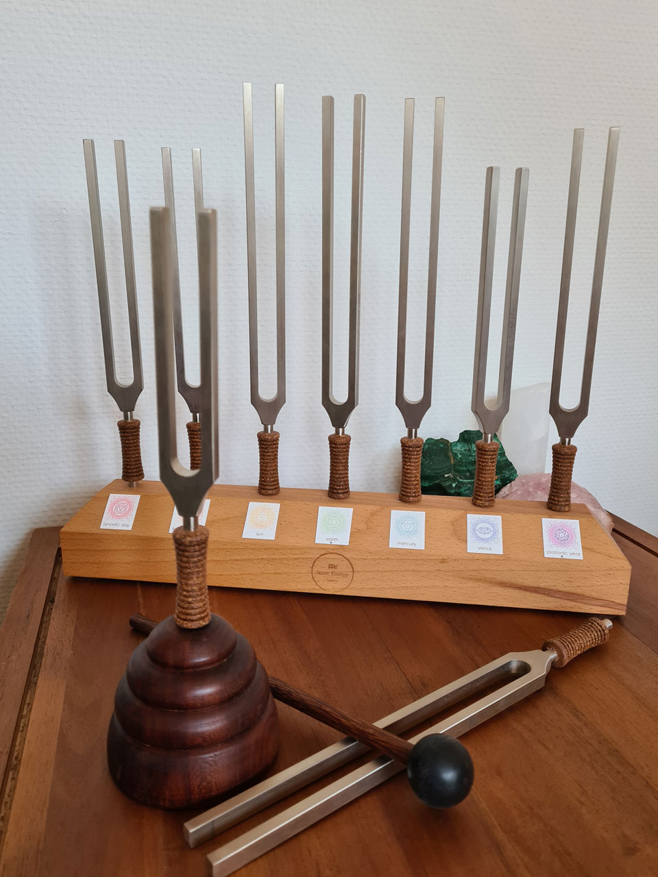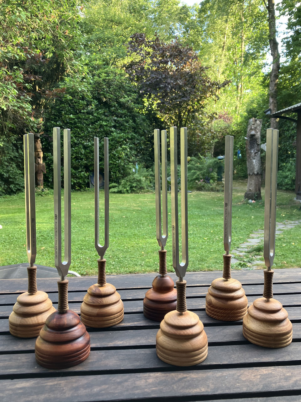 Aus Erfahrung heraus empfehlen wir die therapeutischen Stimmgabeln von Meinl. Sie sind im Gegensatz zu den Standard-Stimmgabeln größer & schwerer und schwingen intensiver & länger!